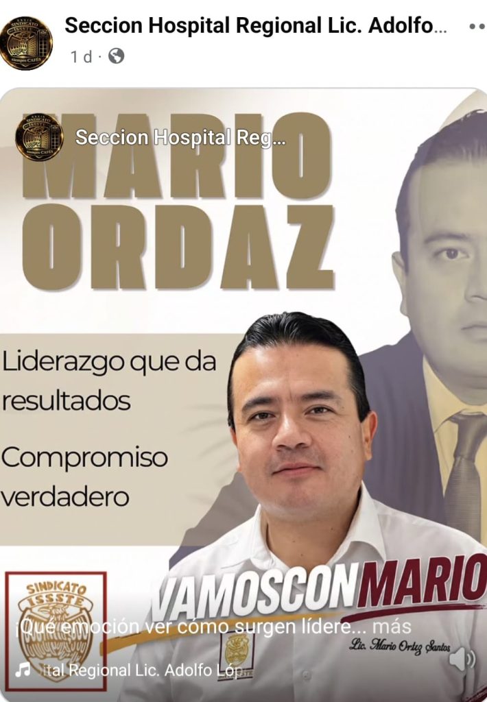 Desde hace varios días, Gustavo Cosío Míreles y Juan Noé Hernández Pérez han posteado publicidad con fotografías de Ordaz, con contenido electoral. Las fotografías que incluimos con el nombre del secretario general de la sección de las clínicas familiares, son pruebas irrefutables.