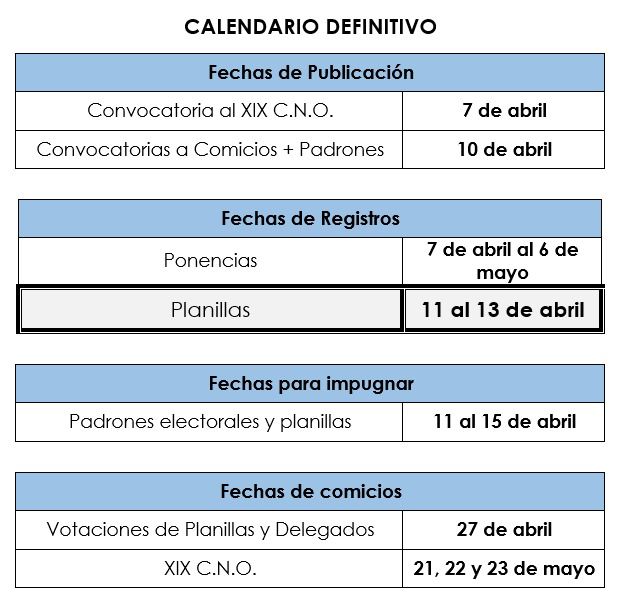 Una vez que esa convocatoria sea pública, el comité nacional electoral emitirá las convocatorias a la elección de presidente e integrantes del comité ejecutivo nacional sindical -incluye la vicepresidencia y 51 titulares de cartera, además de igual número de presidencias de comisión con sus respectivos integrantes- y de delegados al congreso.