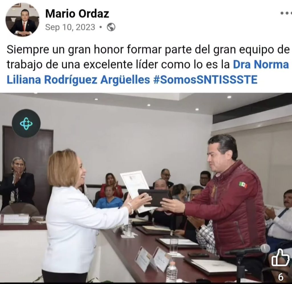 *También Norma Liliana Rodríguez Argüelles integra la Junta Directiva del ISSSTE, permitiéndole no solo acercamiento con el director general, sino también con funcionarios de primer nivel del instituto, a través de los cuales se negocian y operan acuerdos en materia laboral. En una democracia, sea política, sindical o de cualquier índole, muchos factores influyen.
