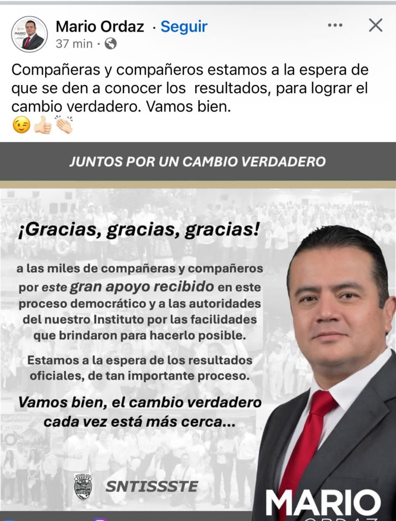 Un mensaje similar posteó Mario Armando Ordaz en redes sociales. “Estamos a la espera que se den a conocer los resultados, para lograr el cambio verdadero“, puntualizó.